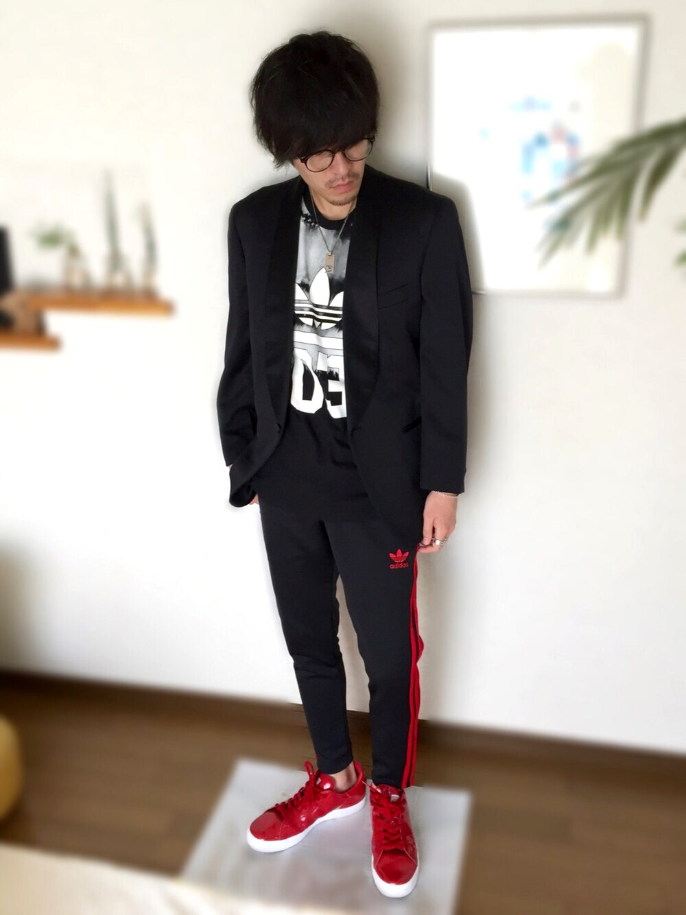 おはようございます🌞‼️ 今日はadidasジャージコーデ✨✨ ジャージの時のトップスはシュッとしてる方がかっこいいんかなーと思い、ジャケット着てみました😶💦 このパンツ、あのめっちゃお洒落でかっこいい!mocoさんが着てたやつと一緒😍👏 俺としては嬉しい偶然でしたっ😁🙌