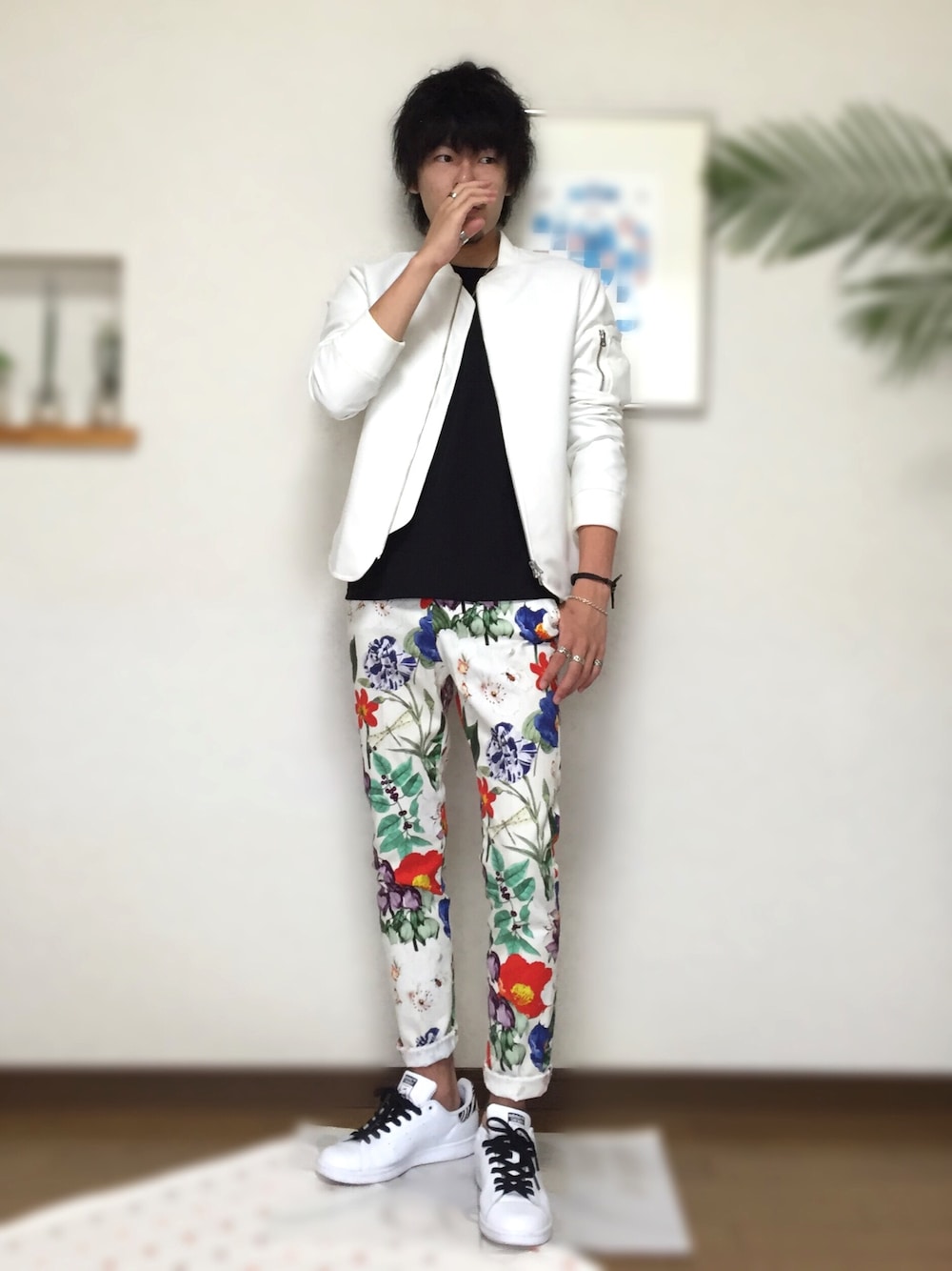アザミのブルゾン「WL ポリエステル ホワイト リブ ブルゾン◆」を使ったコーディネート