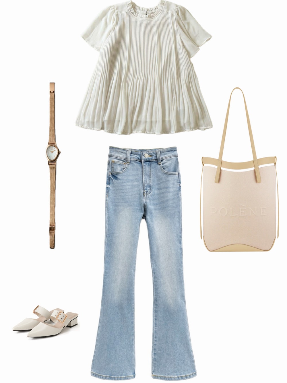 《 Credits of all clothes 》 ■ Tops:VIS シャツ/ブラウス(アイボリー) ↪︎ FREE size ■ Bottoms:GRL デニムパンツ ↪︎ S ■ Bag:POLÈNE トートバッグ(ライトベージュ) ■ Shoes:GRL パンプス(アイボリー) ■ Watch:ete アナログ腕時計(ゴールド) ─────────────── Today’s Point ─────────────── 今日は 出勤コーデ 👜✨ 軽やかなアイボリーのブラウスに、淡いブルーのデニムを合わせて 涼しげな印象にしました☺️🌿 小物はベージュ〜ゴールド系で統一して、 全体がやわらかく上品な雰囲気になるよう意識しました。 このブラウス、ゆるっとしたシルエットで風通しもよく、 真夏の通勤にもぴったりでお気に入りです🤍 アイボリー×ライトブルーは爽やかさ抜群で ちょっとしたお出かけにもおすすめ◎ ─────────────── #vis #grl #ポレーヌ #ete #オフィスカジュアル #通勤コーデ #プチプラコーデ #きれいめカジュアル #毎日コーデ #wearコーデ #おしゃれ好きさんと繋がりたい