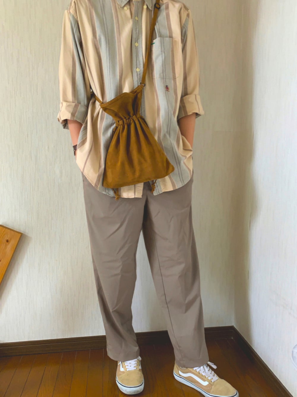 閲覧ありがとうございます! 毎日投稿しているのでよろしければ フォローの方もお願いします 今日はベージュのワントーンコーデです! 靴やバックも同系色で揃えてみました🙆♂️ シャツは古着で買ったTOMMYのものなんですがめちゃめちゃかわいいです🥰 少しでも良いと思ったらいいね、お気に入りお願いします!