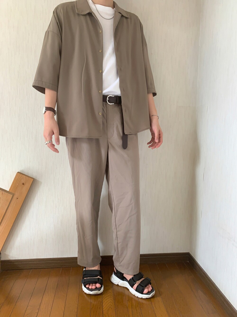 閲覧ありがとうございます! 今日はベージュのセットアップ風コーデになります! CASPER JOHNのシャツとGUで値下げされて1000円以下で買ったパンツが似た色だったので合わせてみました!GUのコスパ最強です👌 少しでも良いと思っていただけたらいいね、お気に入りお願いします!