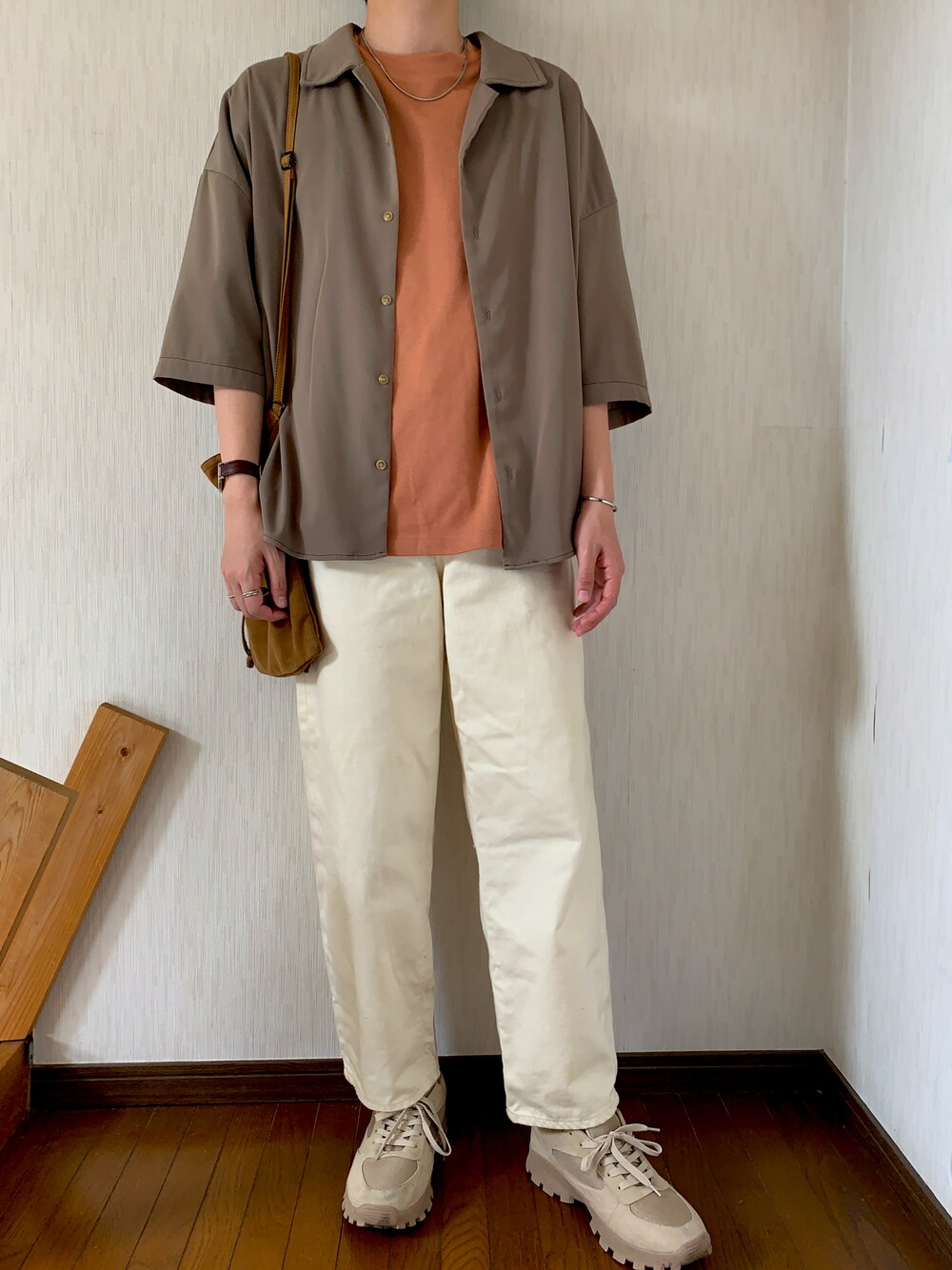 閲覧ありがとうございます! 今日は暖色コーデです! ブラウンとオレンジの組み合わせめっちゃかわいいです🍊 靴とバッグも暖色で揃えました🙆♂️ 少しでも良いと思っていただけたらいいね、お気に入りお願いします!