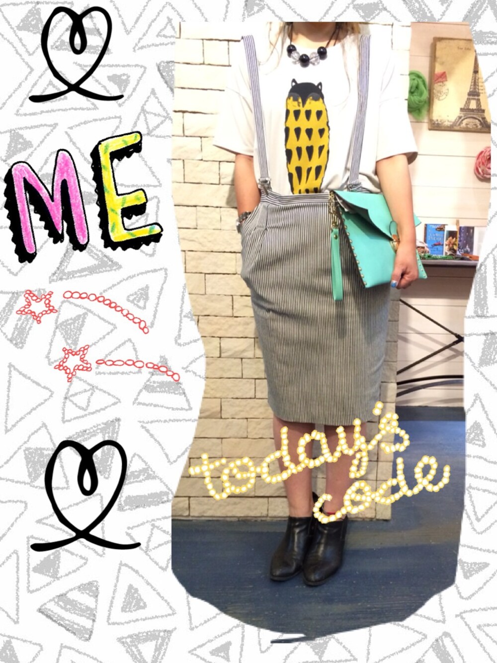 トップス…slickmist サス付きスカート…slickmist バッグ…slickmist シューズ…jeanasis