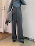 【デニムジャケット】 15周年を記念してリバイバルしたデニムGジャンです。 以前定番アイテムとして人気だったデニムジャケットが、少し今らしいサイジングにブラッシュアップして再登場しています! すっきりとしたコンパクトなシルエットで、軽アウターとしてはもちろん、トップス感覚でも使えます。オーバージャケットの中に着たり、上にファージレを羽織ったりしても素敵です。 カジュアルになりすぎず大人っぽくスタイリッシュに楽しめる一着です。 【カーディガン】 ふわふわのファーニットの素材感が可愛いニットカーディガンです。 メタルボタンがポイントで、ジャケットのようなデザインが大人っぽく上品な一着です。 少し短めの丈感でどんなボトムともバランスが取りやすく、サラッと羽織ってもボタンを閉じても決まりやすいです。 とても軽く柔らかな着心地なのに暖かさも抜群で、肌寒い時期の軽羽織りとしても、真冬のコートインにもおすすめです! 毎シーズン必ず登場するファーニットアイテムは一枚は持っておきたい定番アイテムです。 【パンツ】普段サイズM〜L|着用サイズ38 ※パルクローゼット店でのお取り扱いです。 Drawing Numbersのサスペンダー付きワイドパンツです。 ハイウエストデザインが脚長効果抜群の一本です! 私の場合38サイズだと腰回りはちょうど良いですが、少し着丈は長く、ヒールでも少し踏んでしまいます。ウエストは少しゆとりがあるため、実際に購入するならワンサイズ小さくするかもしれません。38はコンパクトなGジャンをインできるサイズ感です。 ストライプ柄の秋冬らしい風合いでカジュアルからオフィスシーンまで幅広く着回し出来ますよ。