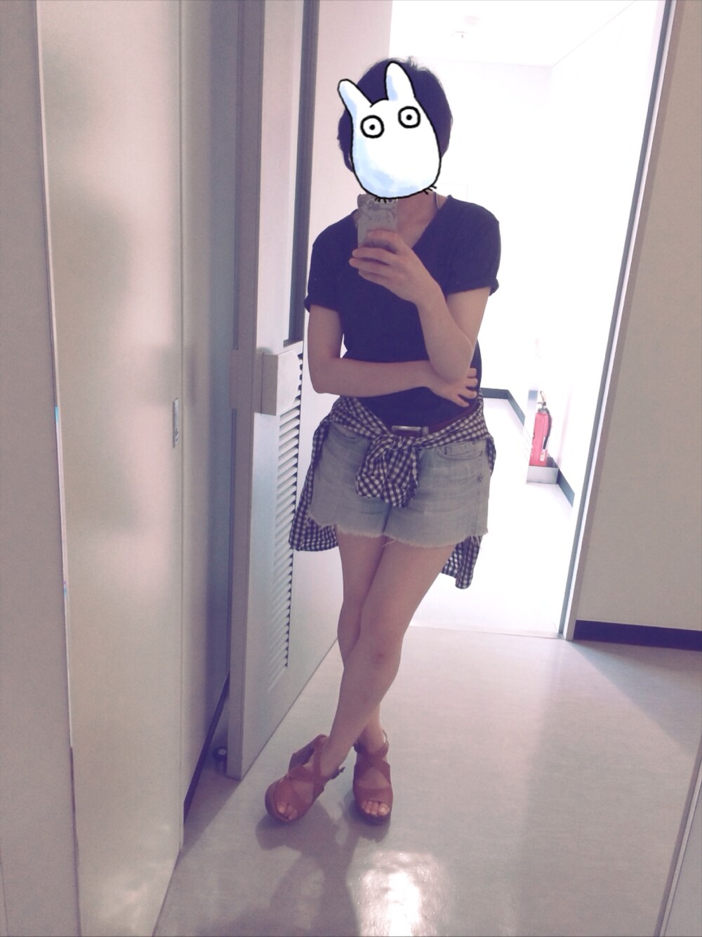 UNIQLOのパックTシャツ 初めて着てみた☻! 首元ゆるいのが好きだから 自分でちょきちょき✂︎ 鎖骨が見えていい感じ〜