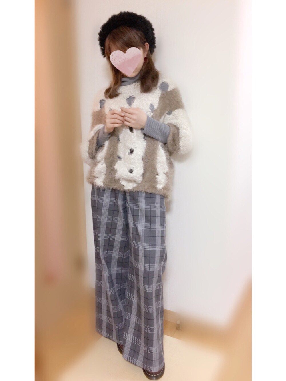 グレンチェックのワイドパンツでマニッシュなコーデに