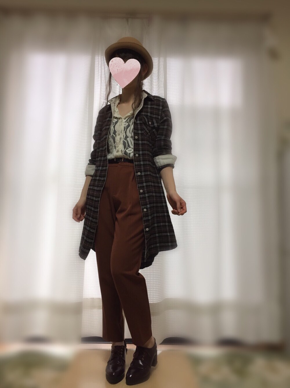 古着!?コーデにしました🙆🏼🌟 茶系でまとめて公園のお散歩をイメージしました😊