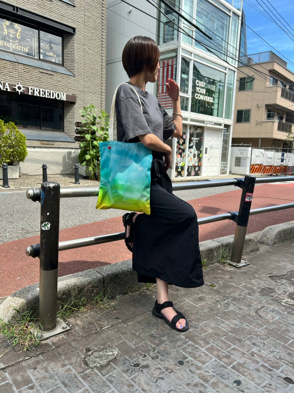 モノトーンコーデに旅する喫茶のコラボトートがはえます!