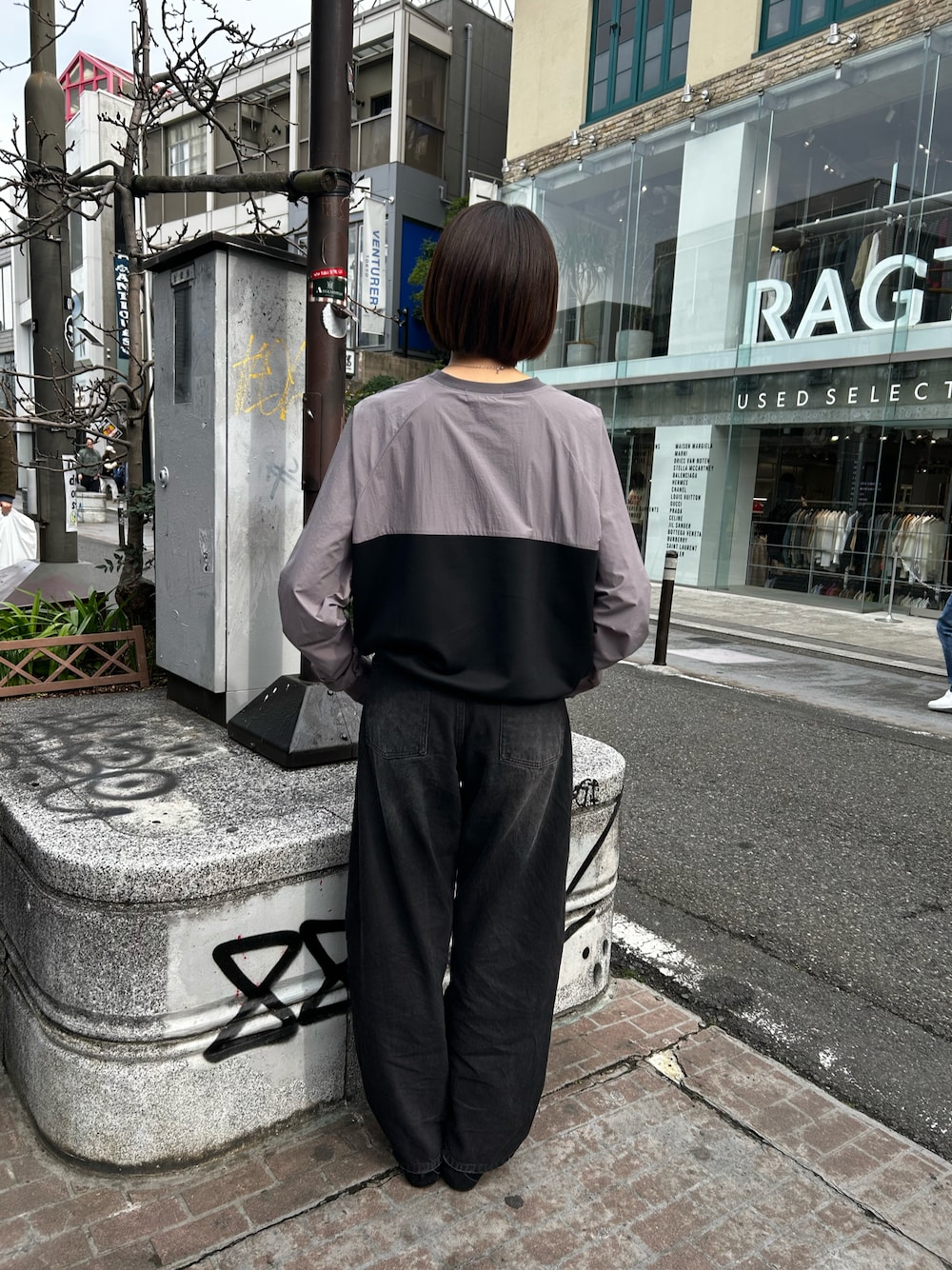 ナイロン生地のドッキングカットソーです! 私はデニムにあわせたけど、スカートとかどんなものにも合います 丈もベスト!