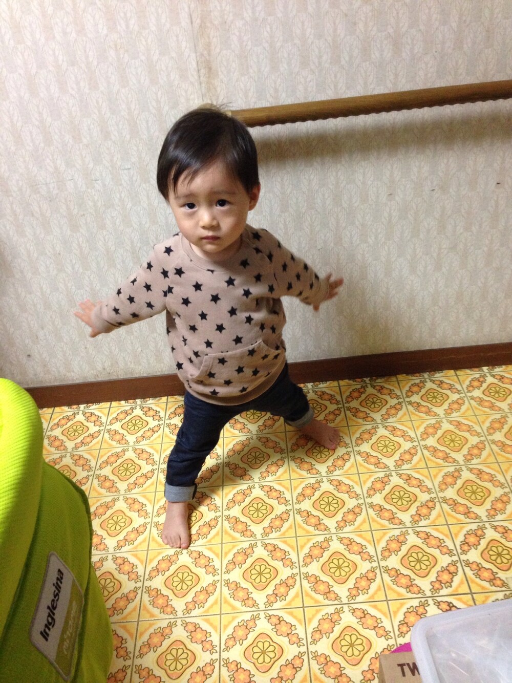 今日は慣らし保育で初めての幼稚園…コーデ。 上下UNIQLOで^ ^ お弁当完食にかーちゃん感動…