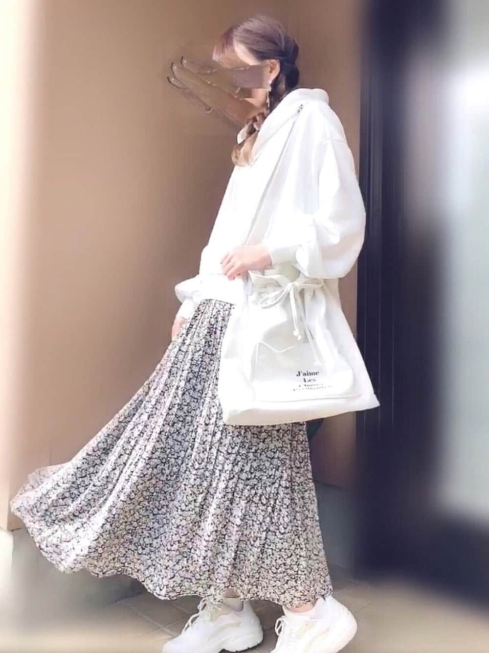 上下natural coutureコーデ✨ 予約してた花柄の消しプリーツスカート💕 ようやく届いてルンルンしてます🌸 履いてみたらやっぱり可愛かった😍 スカートが主役なので、他は全て白で統一してみました! 見てくださりありがとうございます😊