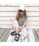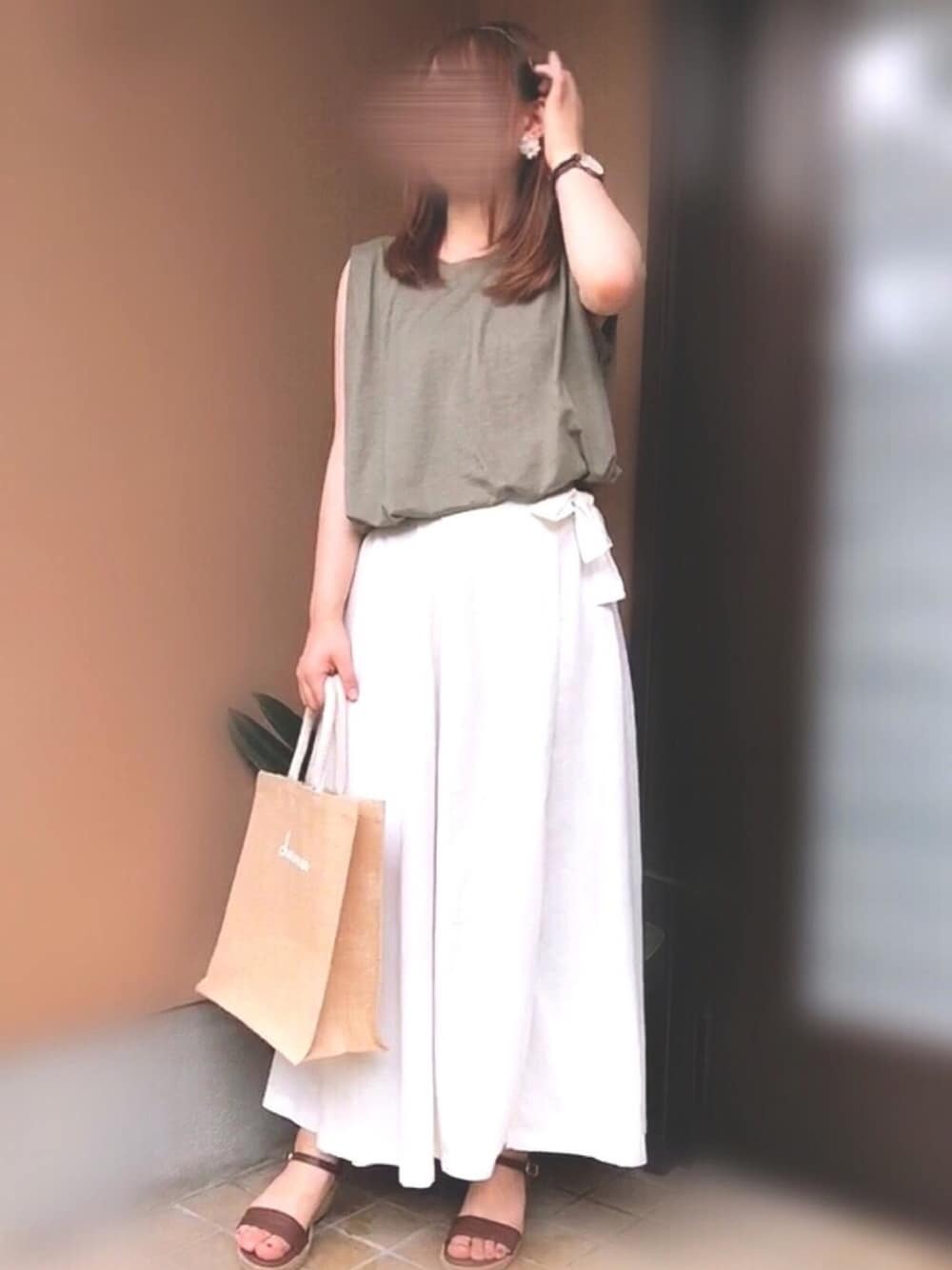chocomeeのhappy summer bagに入っていたカーキのタンクトップでコーディネート💕 腕周りがボリュームがあって二の腕があまり気にならなくて着やすかったです☺️✨ 見てくださりありがとうございます😊