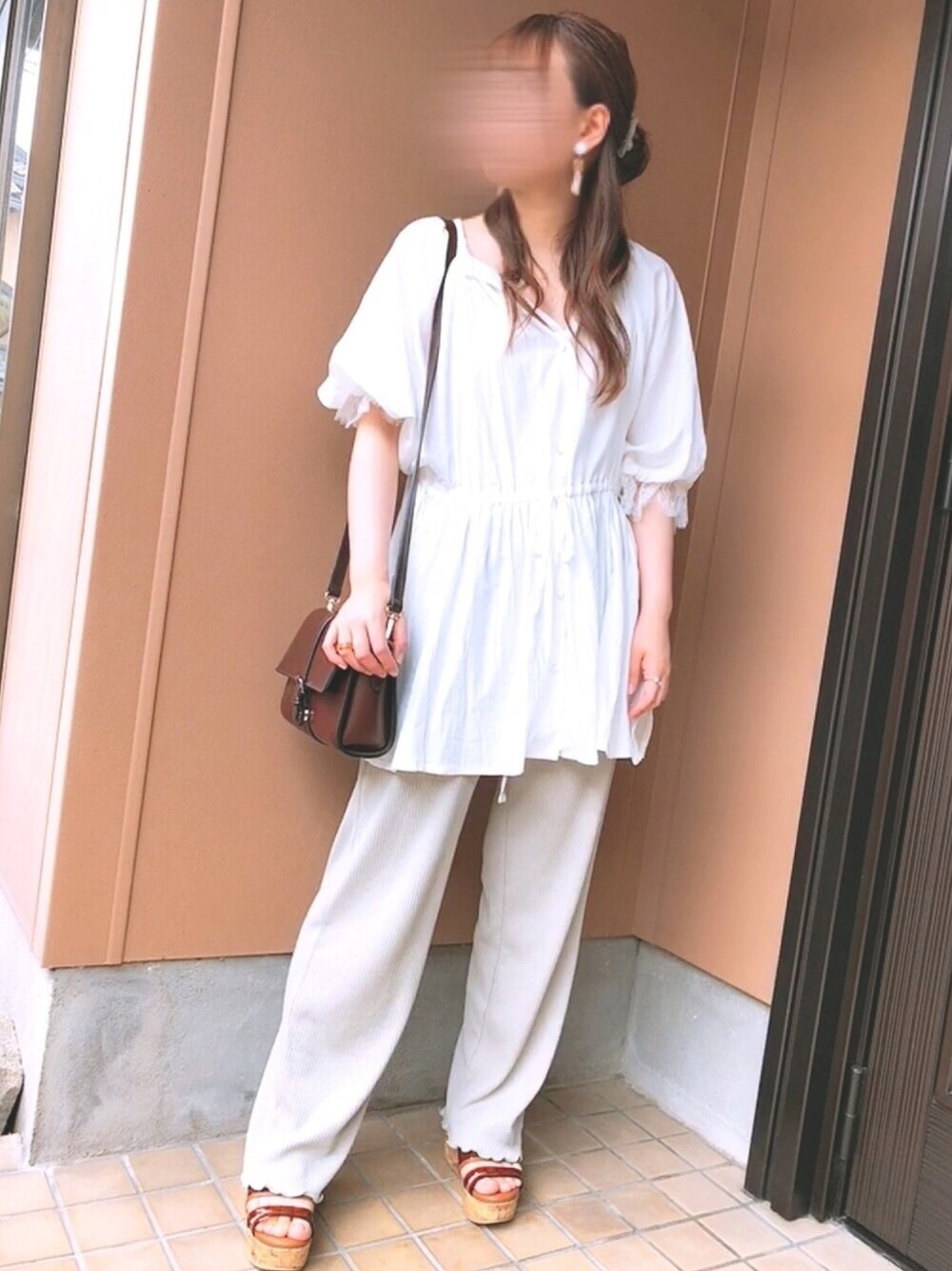 あずきのシャツ/ブラウス「袖口レース半袖ブラウス」を使ったコーディネート