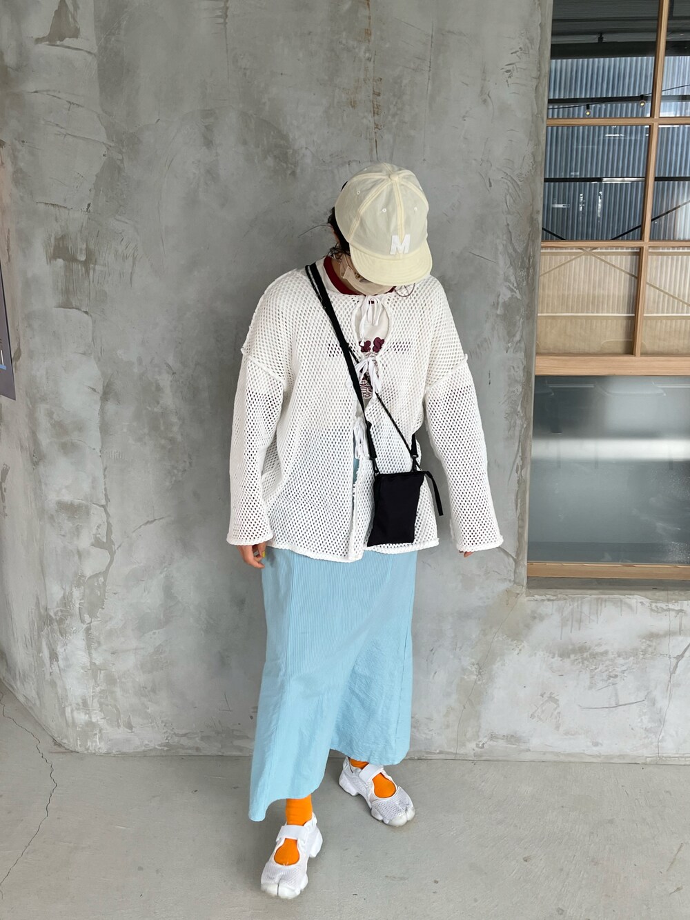 中のTシャツの色がボルドーだから靴下も暖色でオレンジにしたら発色が良すぎた😂