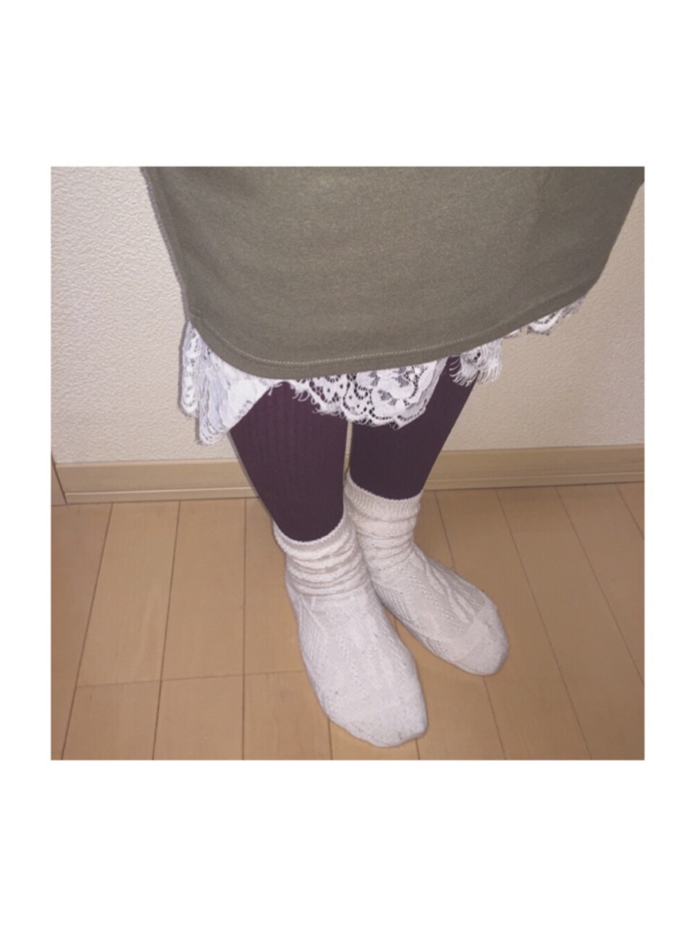 厚手のタイツにカシミヤ素材の靴下 とっても寒かった⛄️ 去年ブームを巻き起こしたレースの羽織を着てみたよ チラ見え感がとてもスキ。 今日も早く寝て明日も頑張ろう!