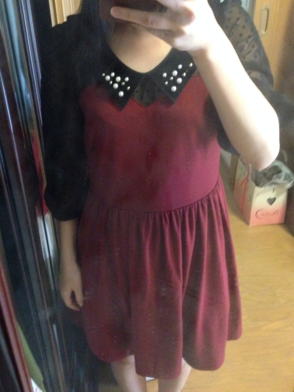 秋色のワンピ♡ お袖は透けてる素材で襟にはビジューが付いてるの♪ お気に入り✨