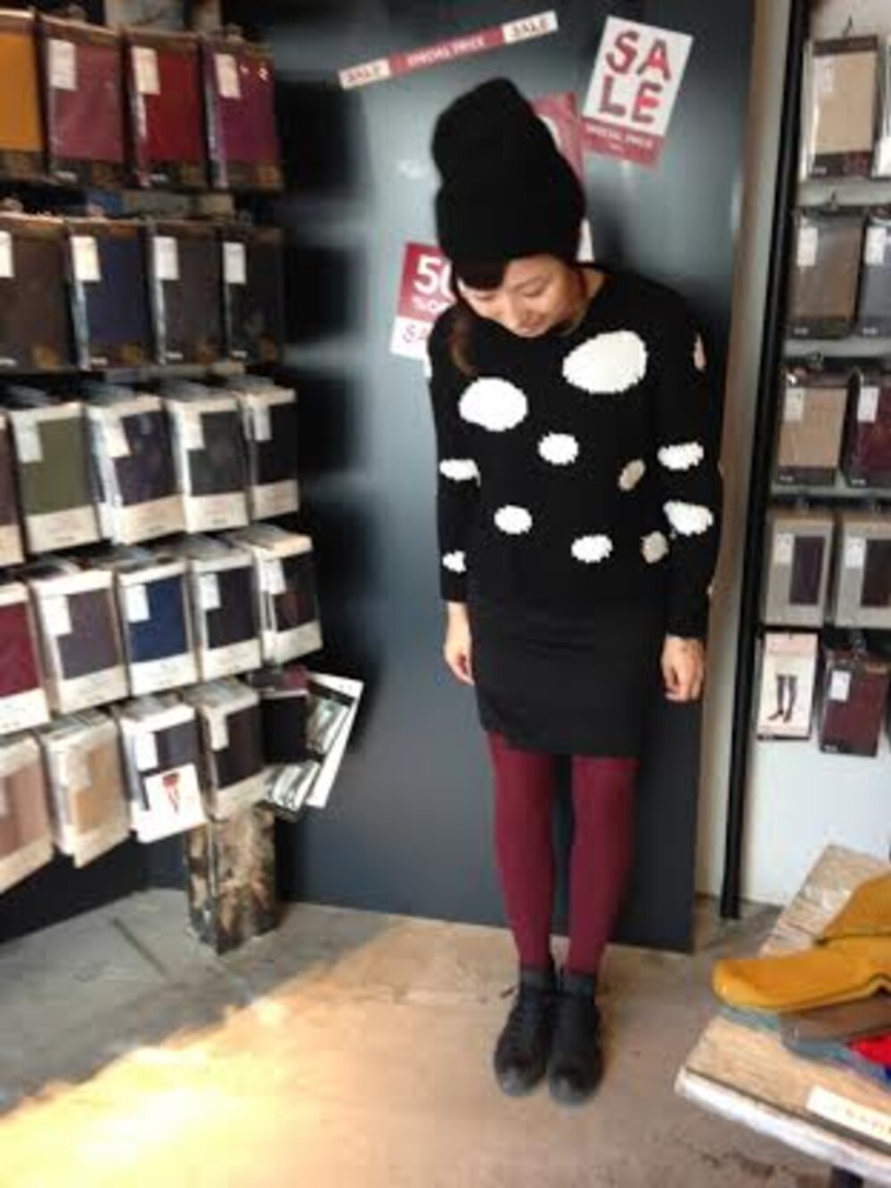 azumaのタイツ/ストッキング「(靴下屋)コットンブレンド変形リブタイツ」を使ったコーディネート