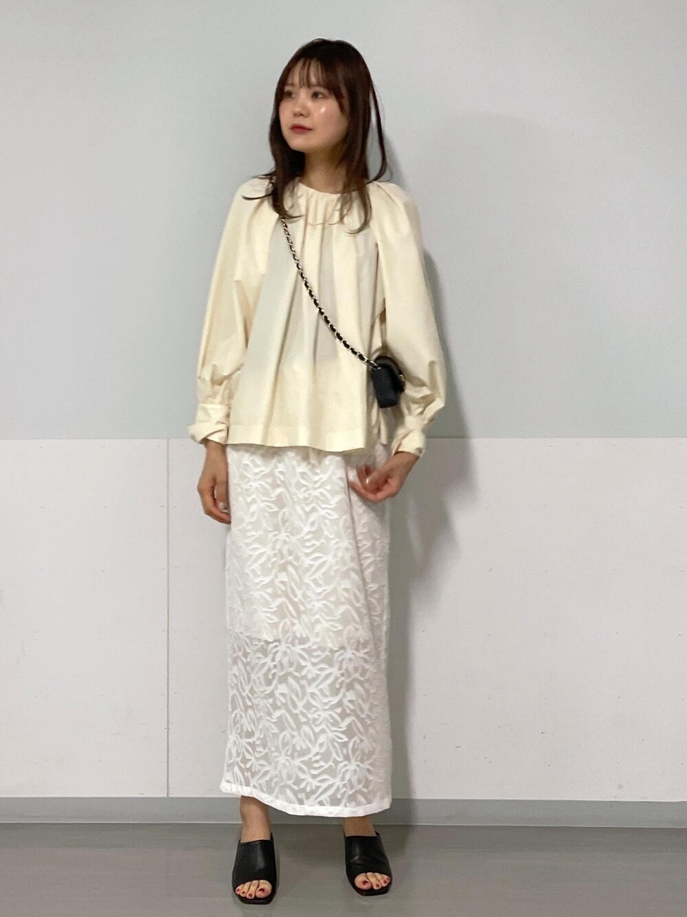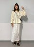 【着用サイズ】 サンダル 38 その他全てフリー イエローの柔らかいカラーが夏らしいコーディネートです。 フレアスカートやデニムに合わせてもきまります。
