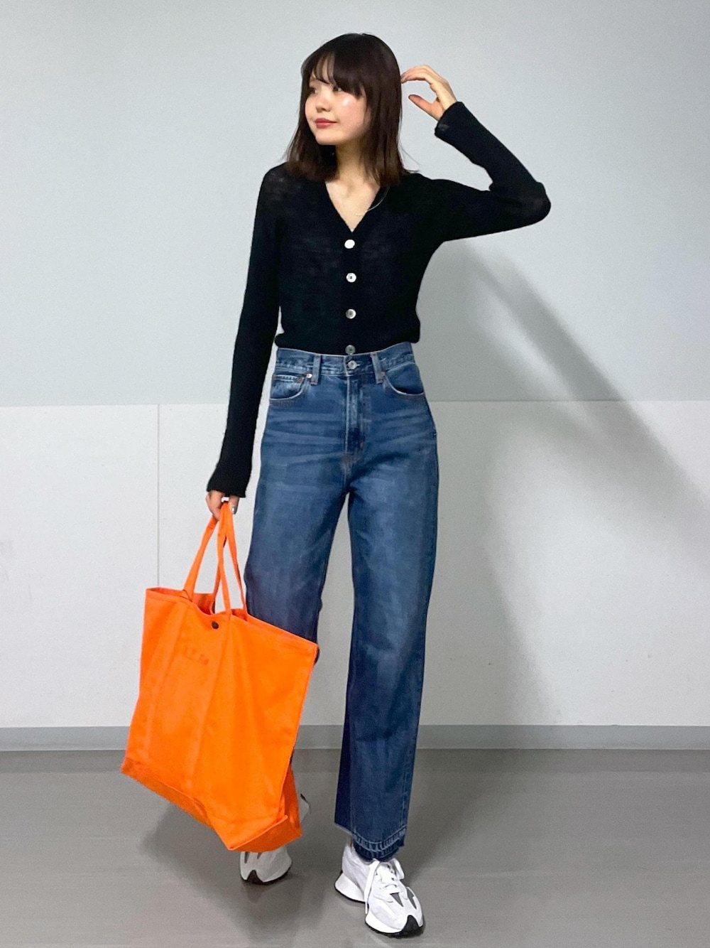 Vネックにデニムで、程よく抜け感を出しました。 スニーカー以外にも、バレエシューズと合わせてもう少しカジュアルさを無くしても⚪︎ シューズ SBA63330