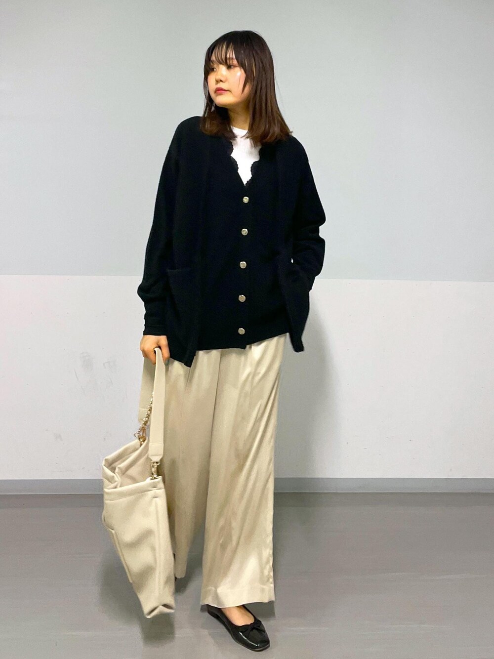 一枚でレイヤード風カーディガン、 丈もしっかりあって安心感があります。 Vネックアイテムにおすすめのレースジレを重ねました。 胸元がかなり開いていて一枚だと不安なお洋服に重ねたり、 シンプルに一枚でも♪ シューズ スタッフ私物
