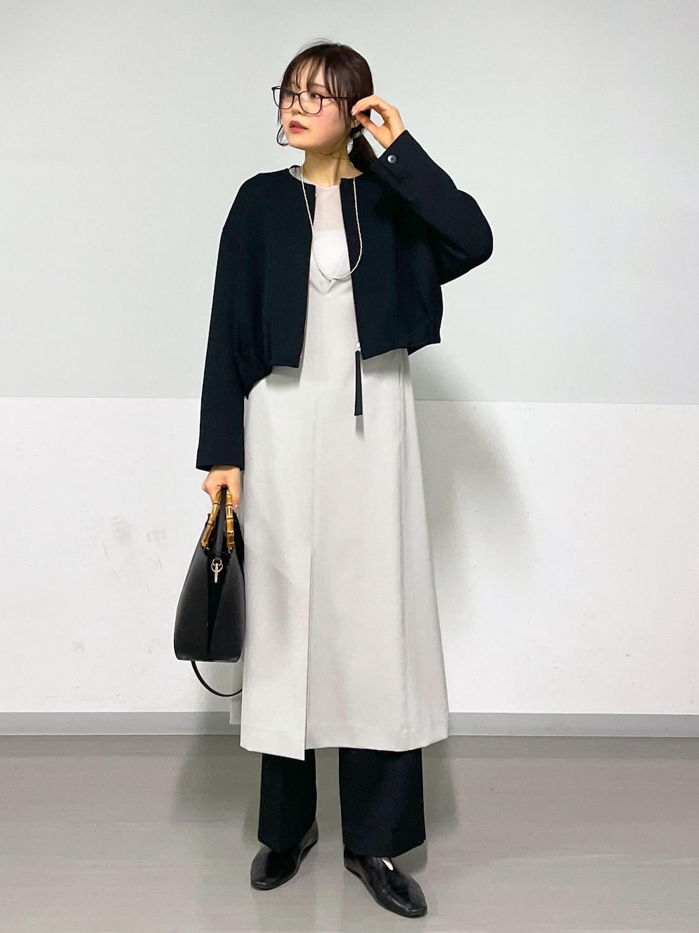 少し肉厚で軽いアウターです。 丈がすっきりしているので、バランスをとりやすかったです。 シューズ スタッフ私物 ネックレス SBZ54010 ¥29,920