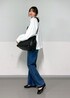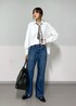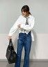AZUMAのシャツ/ブラウス「【雑誌掲載】ボリュームスリーブクロップドブラウス 無地/ストライプ」を使ったコーディネート