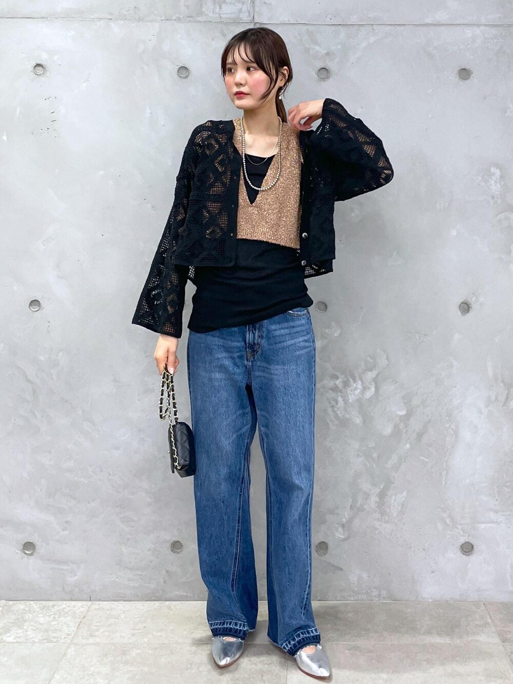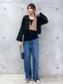 程よく身幅があり、重ね着しやすいトップス! インナーのブラックのタンクトップも伸縮性があり着心地も抜群です。