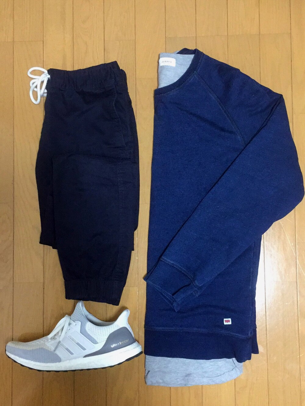ロングシャツを中に組み合わせたスポーティーかつおしゃれな組み合わせです!