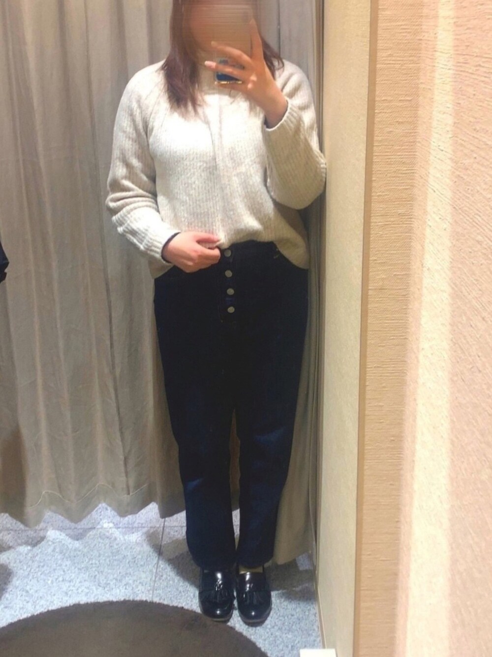 軽井沢アウトレット行ってきました 突然の雪で予想以上に寒くてびっくり⛄️ 床が石畳だったんでツルツル滑りまくって危なかった💦 今度いく時はスニーカーで行こう😨 ニットは大好きなhaco!の求心柄風ニット これ何にでも本当に合う、困ったら手に取る🙇♀️ 柄が入ってるわけじゃないから、下に総柄のスカートとか合わせても映えるしシンプルな格好でもさり気ないオシャレが出来る気がする🥰 あったかいのにそこまで厚い生地じゃないからワンピのインにもいける✌️ デニムはZOZOTOWNで一目惚れした私の手持ちの中で1番高いやつ(笑) マルチサイズで自分の体型にあった物があるからとっても助かるし、写真のイメージ通りに着れて嬉しい限り✨ 世の中のフリーサイズは基本丈とか合わないのでこういうのは本当に嬉しいし、生産が大変だろうけどどんどん増えていってほしい! 足元は白くるぶしソックスとローファーでお気に入りスタイルで🧦 2020.01.07 ☃