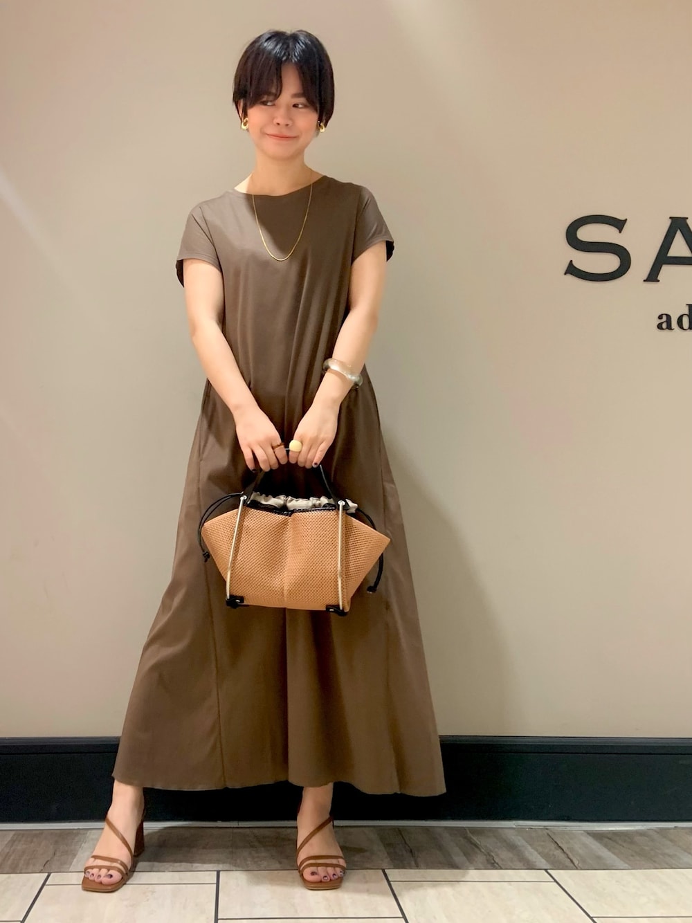 azupon52のワンピース「【made in JAPAN】フレンチスリーブロングTシャツワンピース」を使ったコーディネート