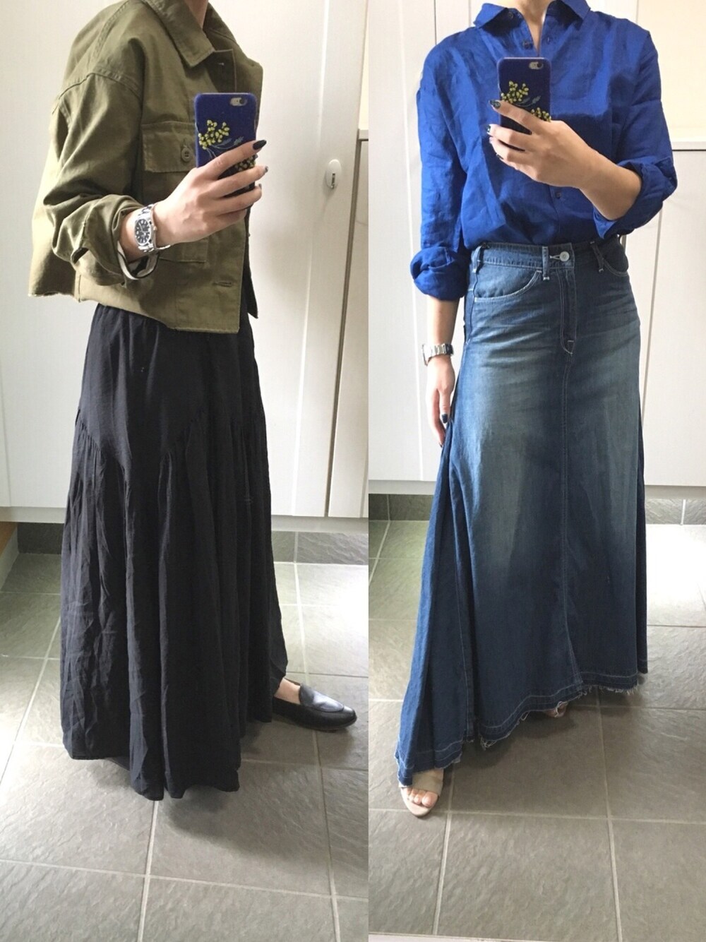ご覧いただきありがとうございます😊 ロングスカートコーデです。 身長が低いので、階段は気をつけないと転びそうになります。 いいね、お気に入りありがとうございます。