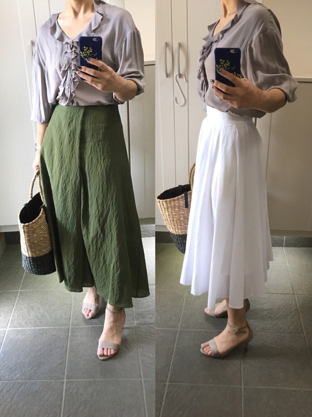 おはようございます! ご覧いただきありがとうございます😊 ブラウスの着まわしコーデです。 昨年購入したものですが、まだまだ現役です。 今日は朝から雨なので、撮りだめのさわやか系です。 いいね、お気に入り、ありがとうございます。