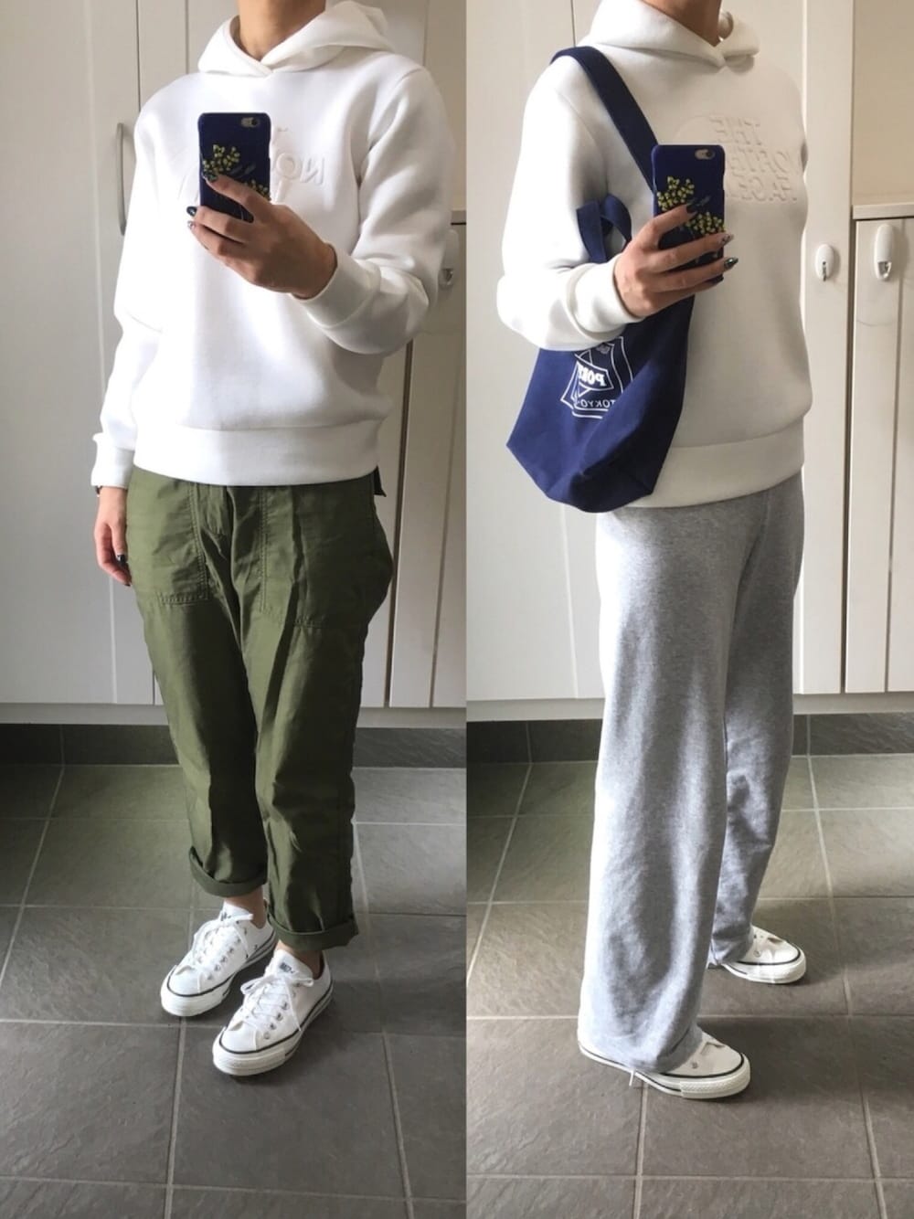 ご覧いただきありがとうございます😊 楽ちんコーデです。 ユニクロのパンツはセットアップの部屋着です。 パーカーは洗濯機で洗ってしまったら、毛玉だらけに...。100均で電動毛玉取り買いました。 いいね、お気に入り、ありがとうございます!