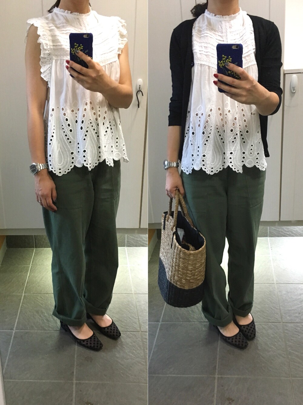 こんばんは😊 いつもご覧いただきありがとうございます。 今日の休日コーデです。 日焼けで腕の色がグラデーションですが、ブラウスがお気に入りなので頑張って撮りました。 いいね、お気に入りありがとうございます!