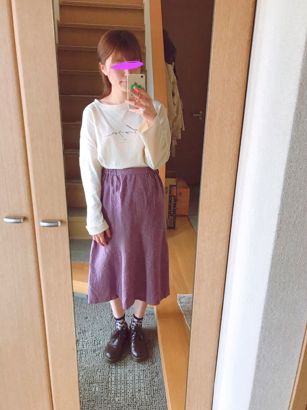 お家でとってもひまなので、、、 春パープルをテーマにコーデ組んでみました! スカートは古着です☺︎ Dholicのトップスは本当に使い勝手がよい〜◎ 私のおすすめはシュガーシュガーさんのくつです☺︎ 色違いで茶と黒を持ってます。 プチプラなのに高見えします!マーチンは高くて手が出せないな、、っていう方にオススメです!