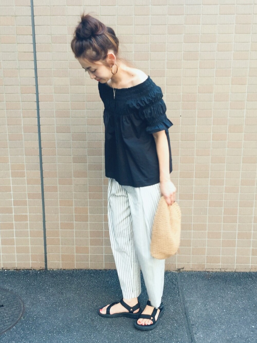 ぺこのシャツ/ブラウス「2WAYオフショルダー半袖ブラウス」を使ったコーディネート