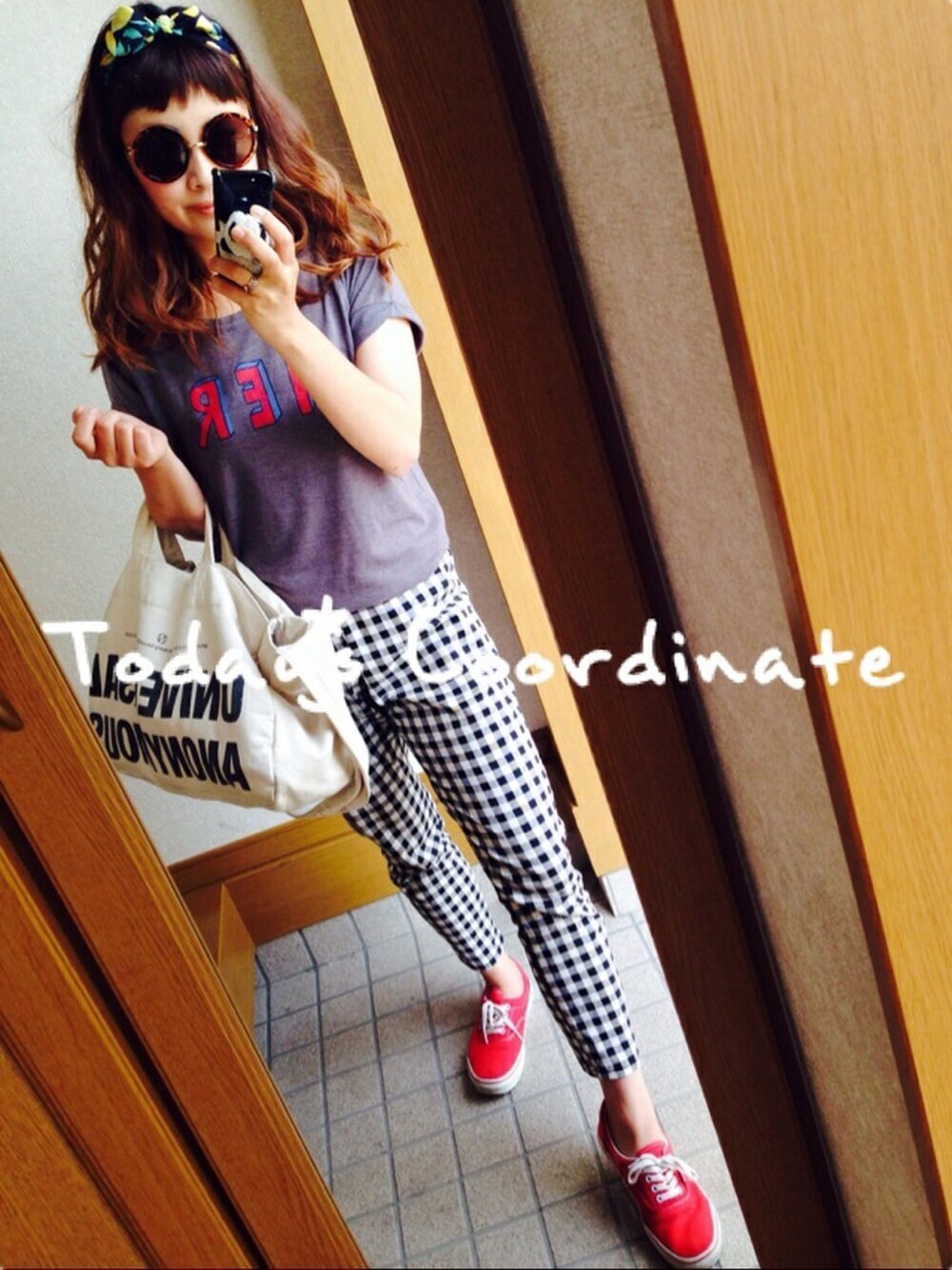 ぺこのヘアバンド「レモン柄のバンダナヘアバンド」を使ったコーディネート