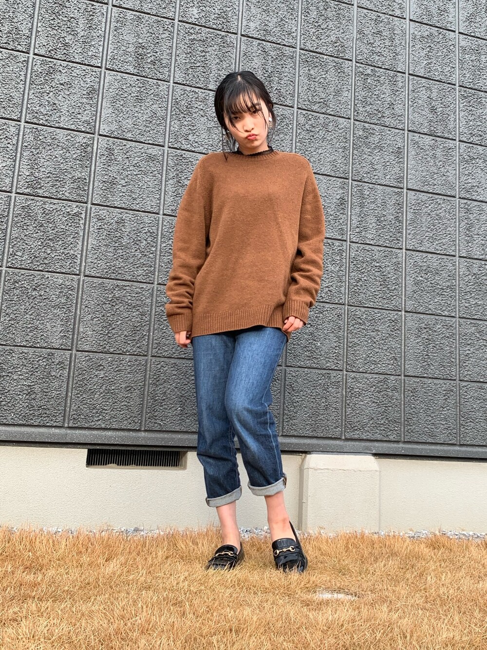 ニットの中にタートルのインナーを覗かせてます。 黒のレースでちょっぴり女性らしさを! Instagram : azyu___1