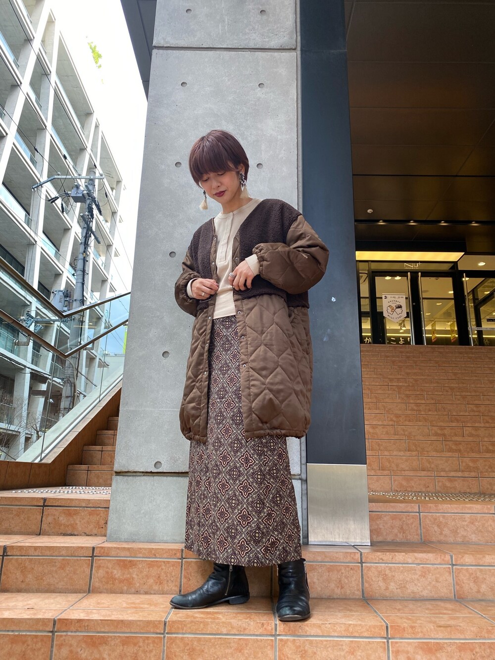 misu azusa(Kastane 福岡店)のその他アウター「ボアキルトドッキングコート」を使ったコーディネート