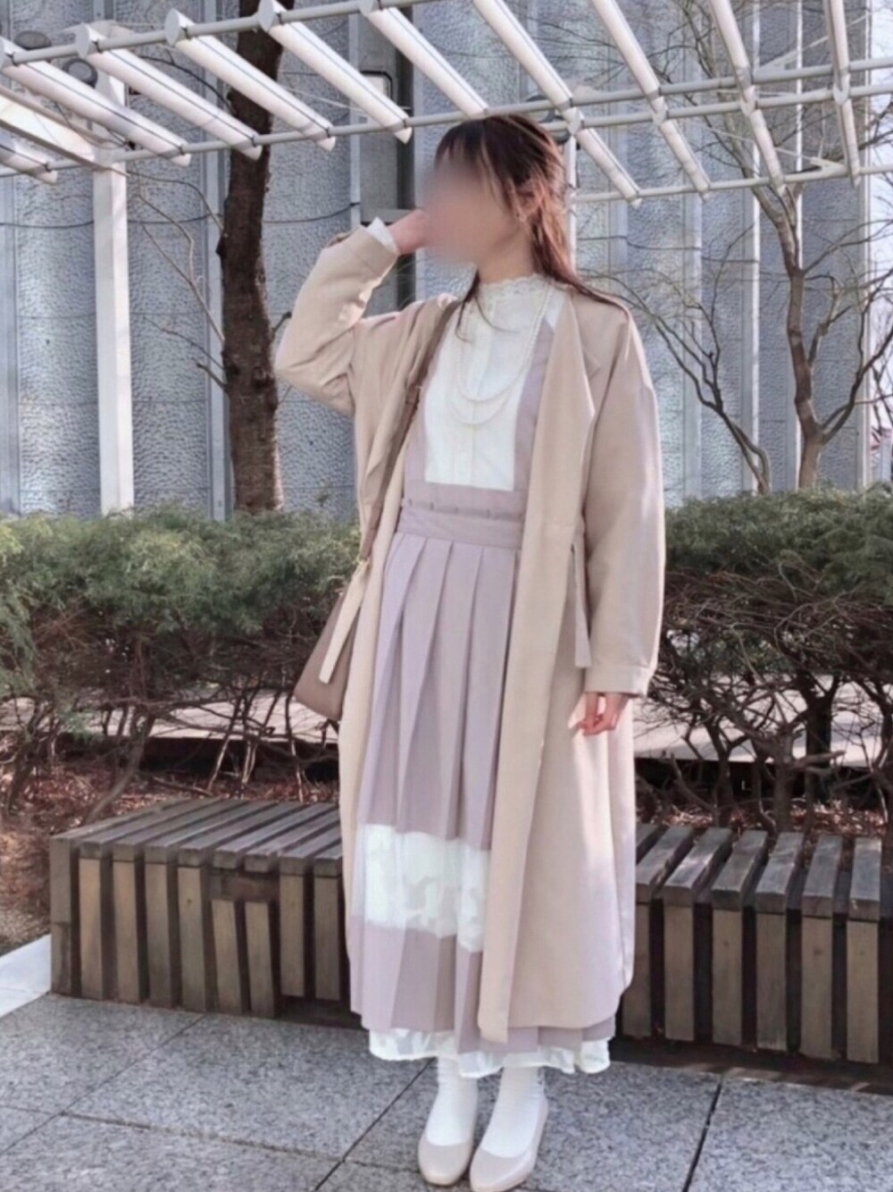 春のコート×ワンピースで出かけました🌸 コートはthree quarterのものでテロっとした柔らかい生地で気に入ってます。 ワンピースは着脱可能なプリーツが付いていて色々な着方が出来て便利です。