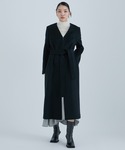 深めのVネックとノーカラーデザインで顔まわりがすっきり見えるコートです。 細めのシルエットなので着膨れしないでおしゃれを楽しめます! ベルトが上の方なので腰の位置が高く見えます!