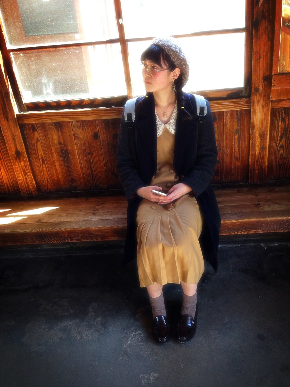 きりんのメガネ「まるめがね 」を使ったコーディネート