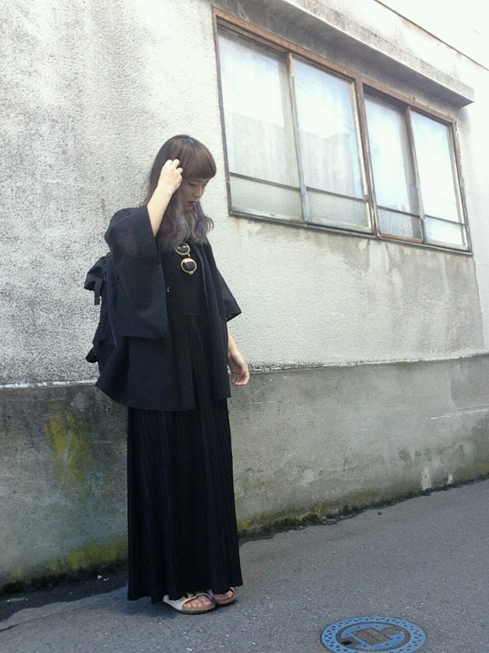 ブラック系のスカート、ブラック系の水着/着物・浴衣を着用したレディースの夏コーディネートの1枚目の写真