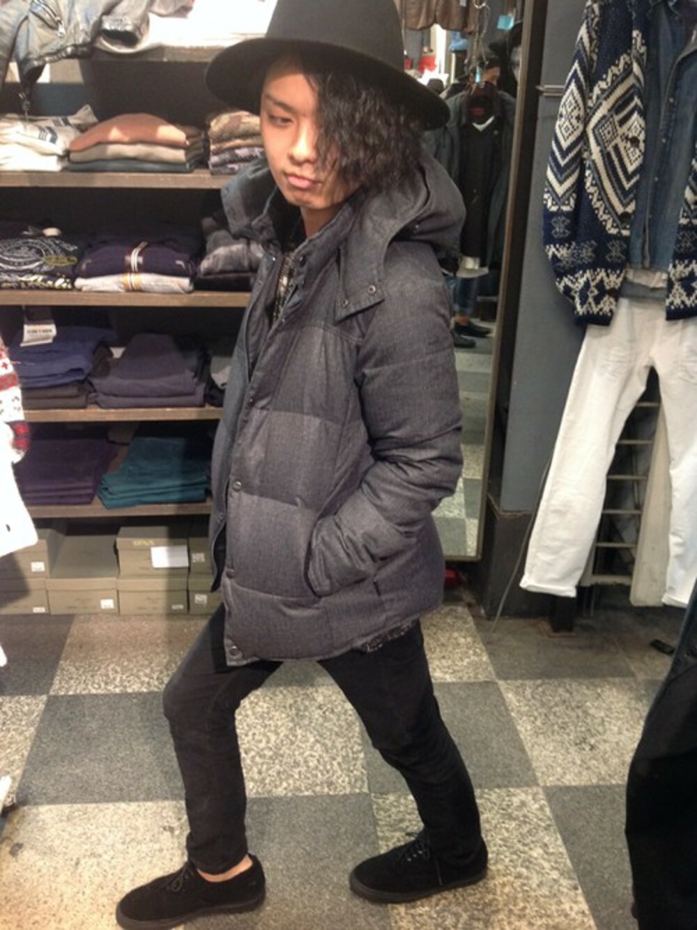 B'2nd UENOのダウンジャケット/コート「AKMxAMPHIBIANxB'2nd (エーケーエム/アンヒビアン/ビーセカンド) 別注ダウンジャケット (247)」を使ったコーディネート