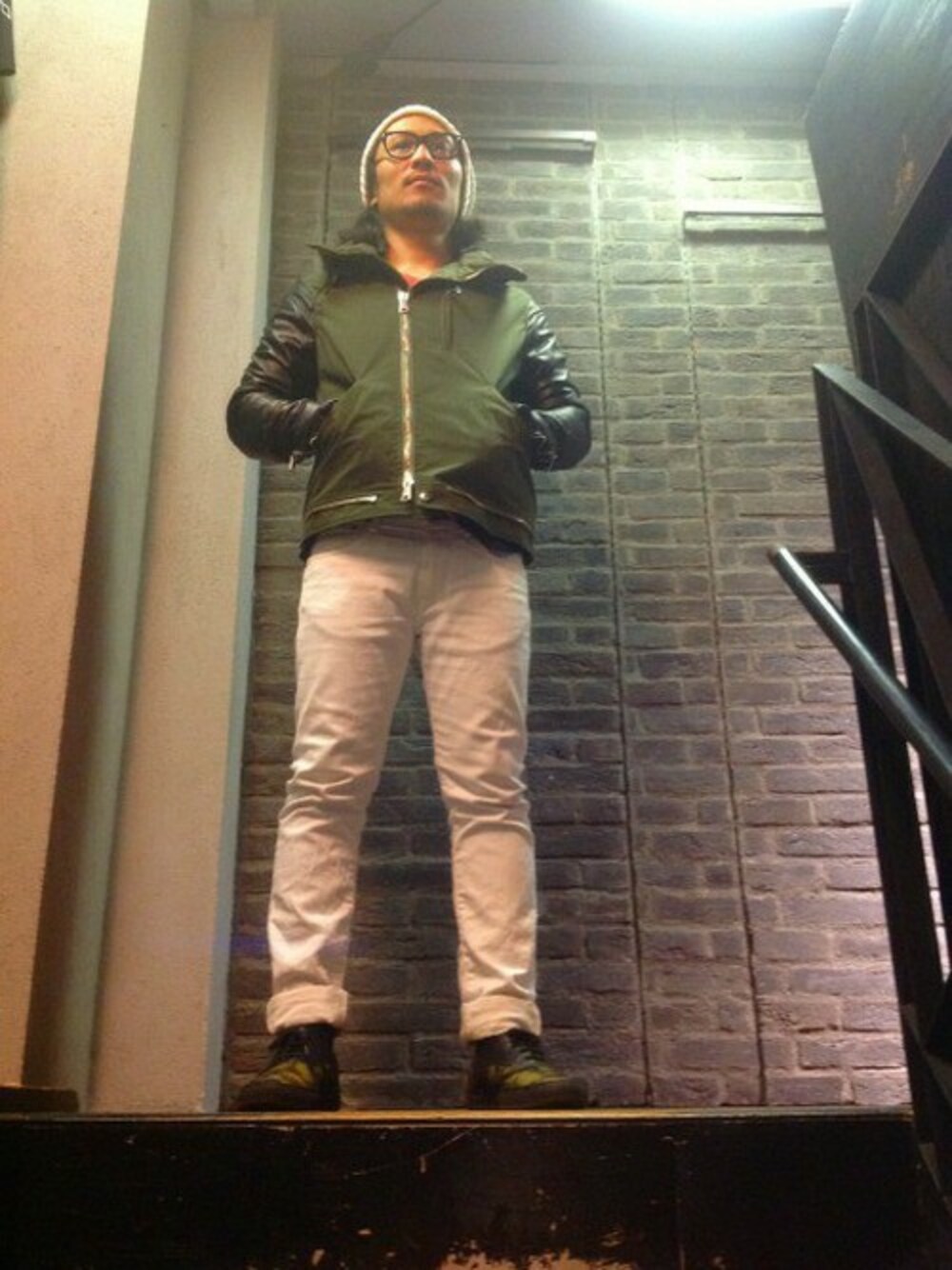 GIORGIOのミリタリーブルゾンを主役に♪ 全体的に重く見えないように、ボトムはホワイトデニムで軽さを出しました・