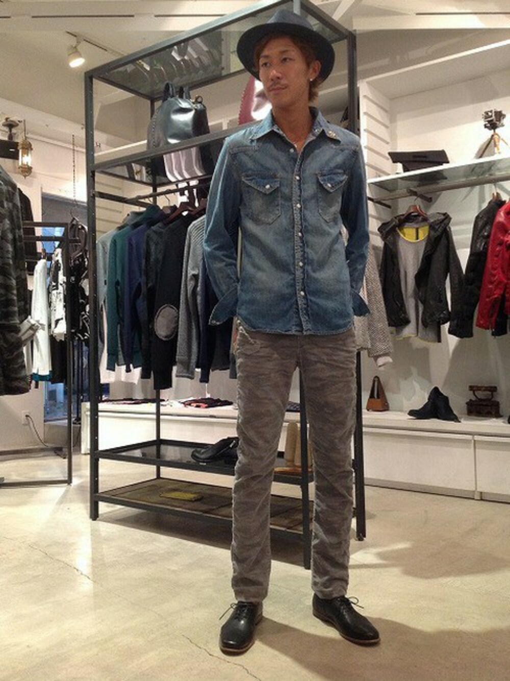 B'2nd JIYUGAOKAのシャツ/ブラウス「REMI RELIEF(レミレリーフ) 別注デニムウェスタン襟花スタッズ(504)」を使ったコーディネート