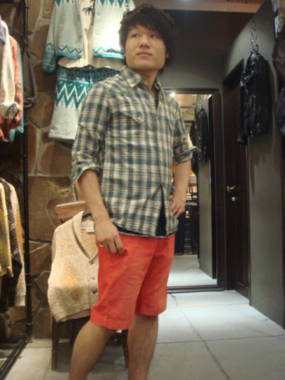 チェックシャツ×ショーツの定番スタイル。 色使いで遊びました!