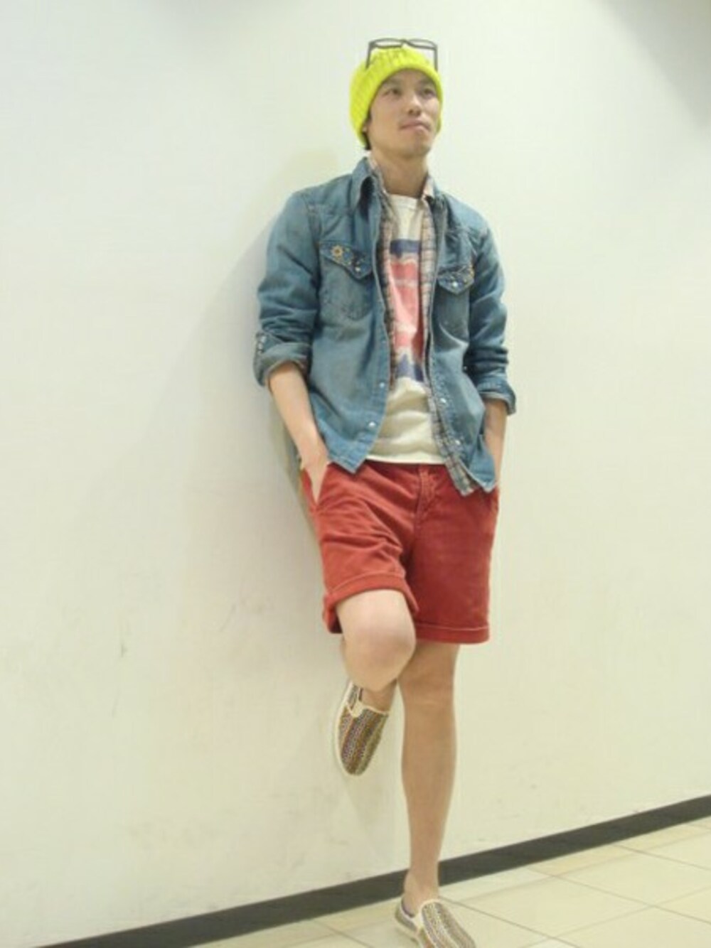 全身REMIのアメカジ&サーフテイストのスタイリングです。ポイントポイントでカラーを合わせて統一感を。