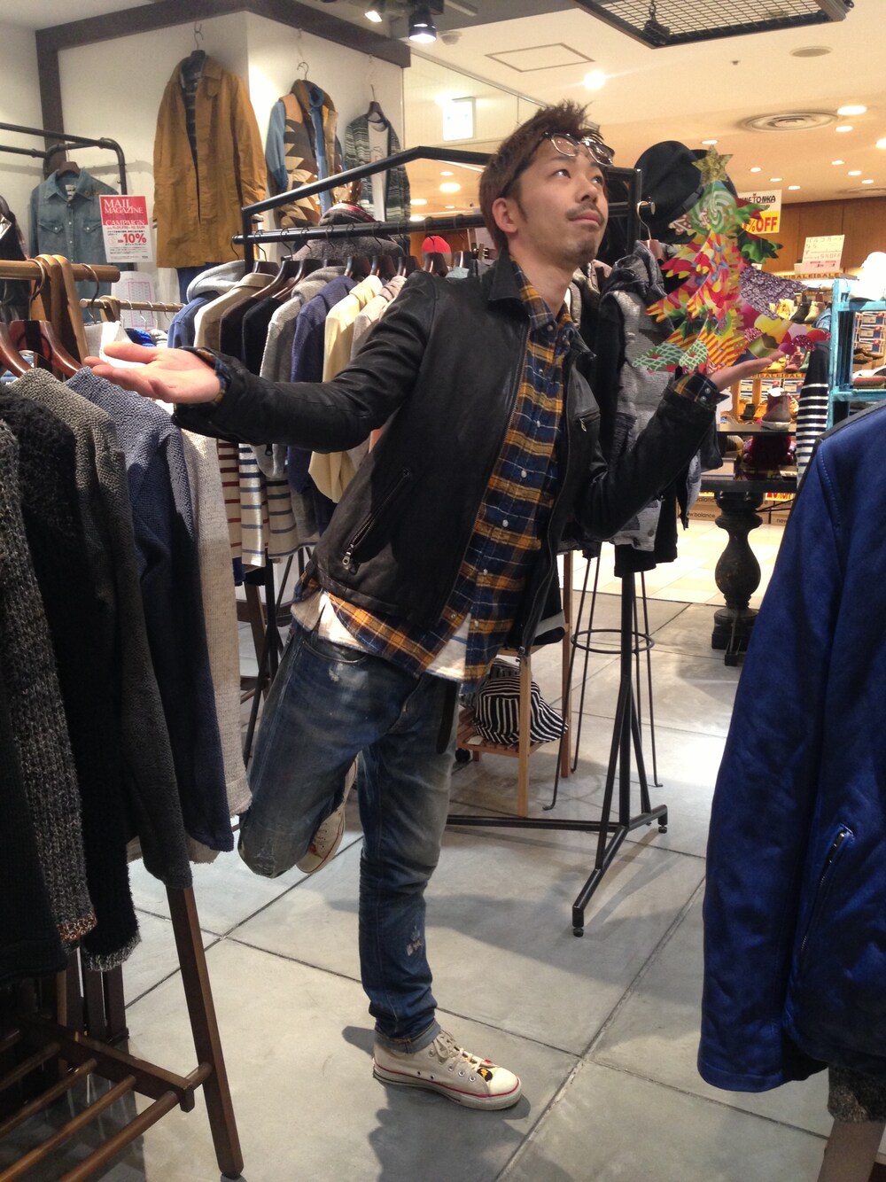 岡田(B'2nd 名古屋パルコ店)のライダースジャケット「B'2nd (ビーセカンド) 衿付きレザーBZ (6017)」を使ったコーディネート