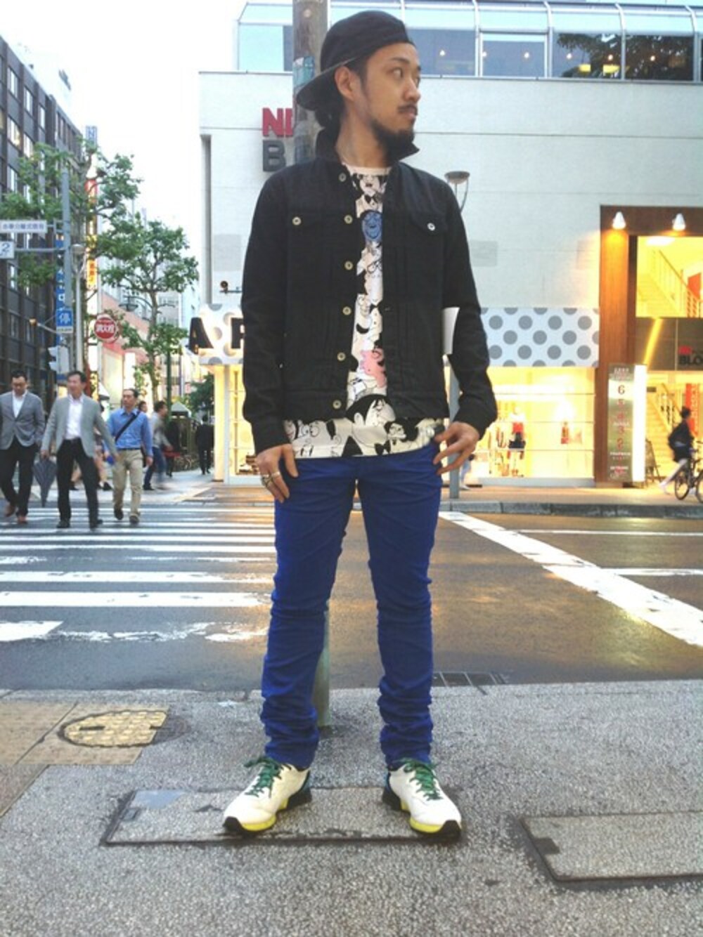 インナーのTシャツは、インドのイラストレーターのマリオ・ミランダの作品を大胆にプリントした1枚。 カジュアルなTシャツが多い中で、一際異彩を放っています♪ パンツは日本代表を意識してサムライブルーに!